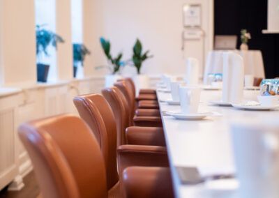 Vi kombinerer gerne mødet med forplejning, kaffe, frugt og snacks, frokost eller middag samt overnatning, så I får en fuldendt dag i komfortable omgivelser.