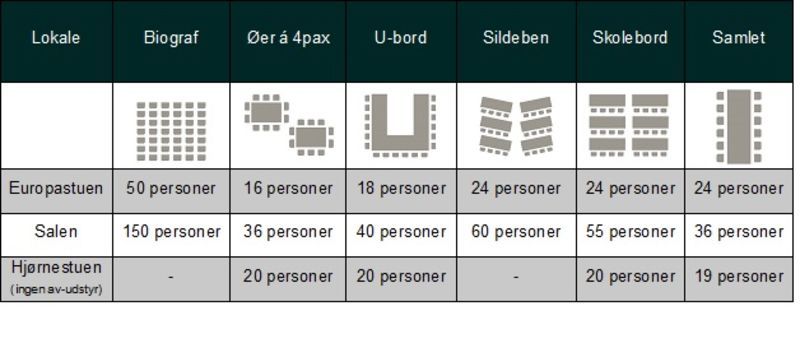 På Hotel Europa har vi to funktionelle konferencelokaler med aircondition. Vi tilbyder desuden div. av-udstyr, projektor, flip-over samt mikrofoner i vores sal.
